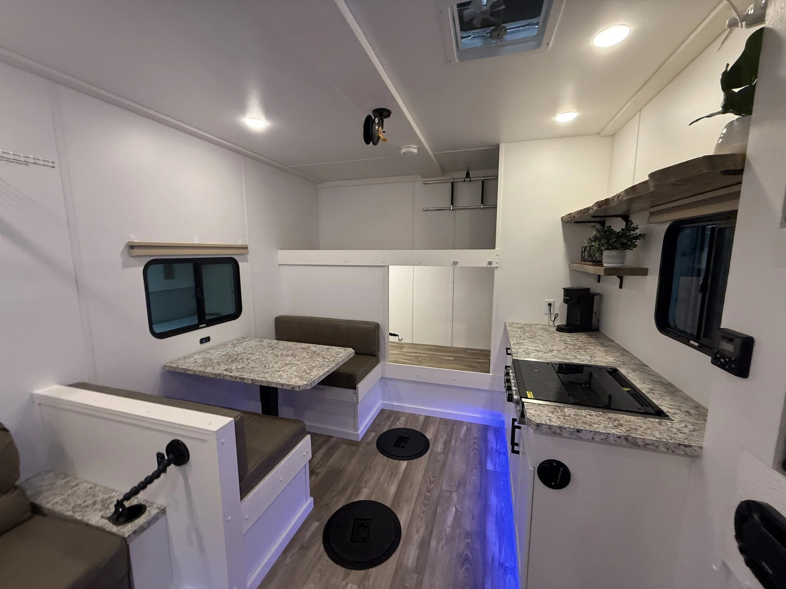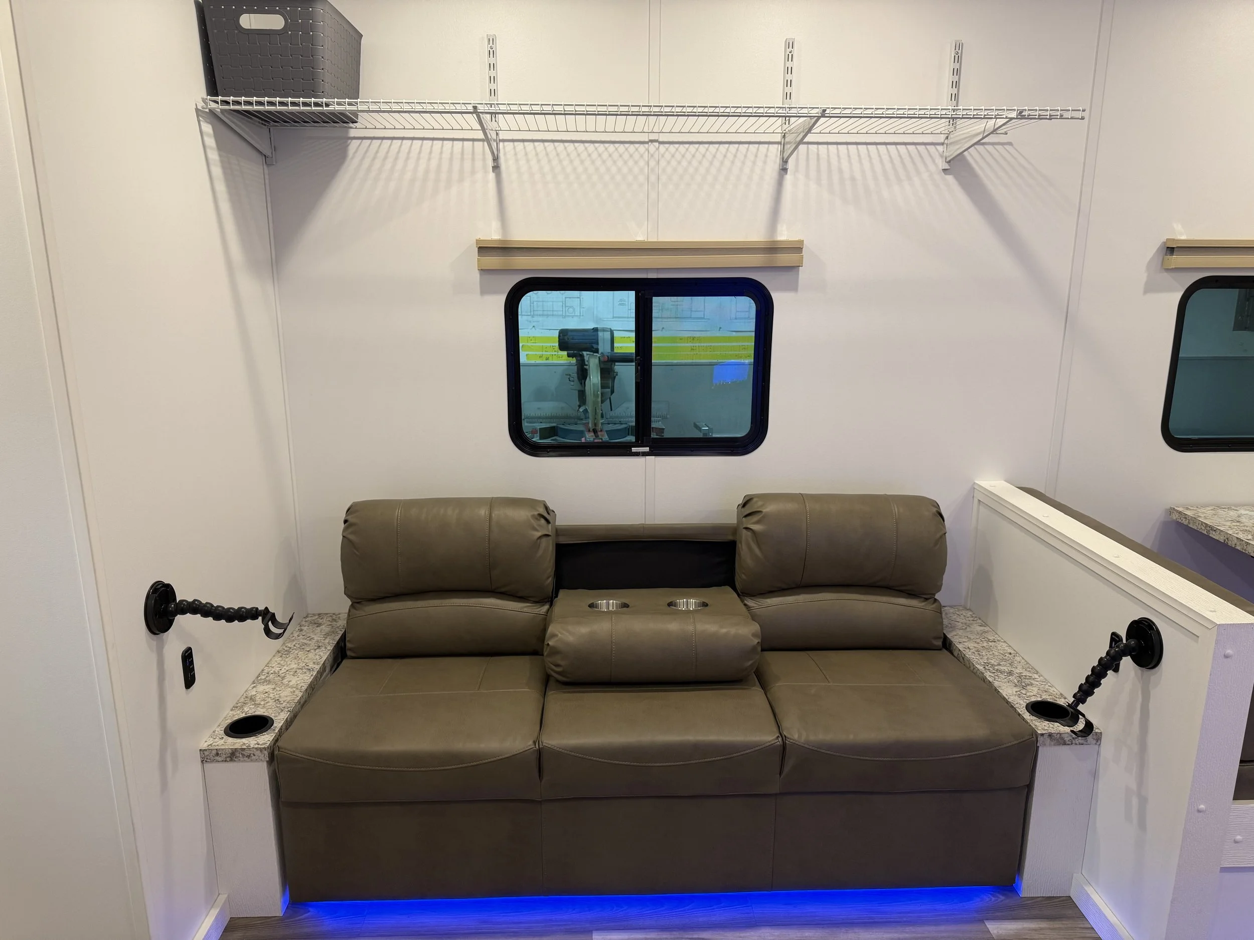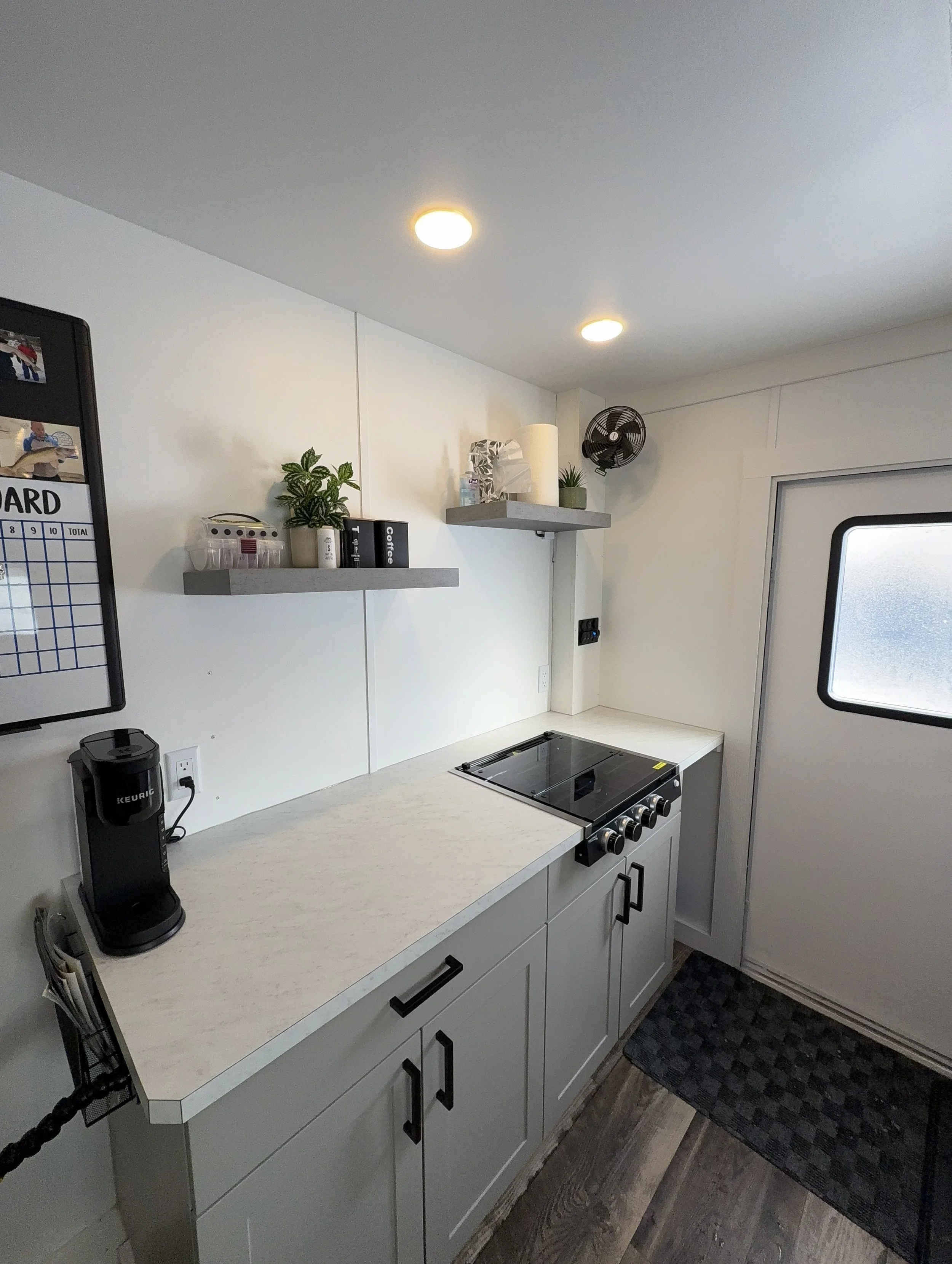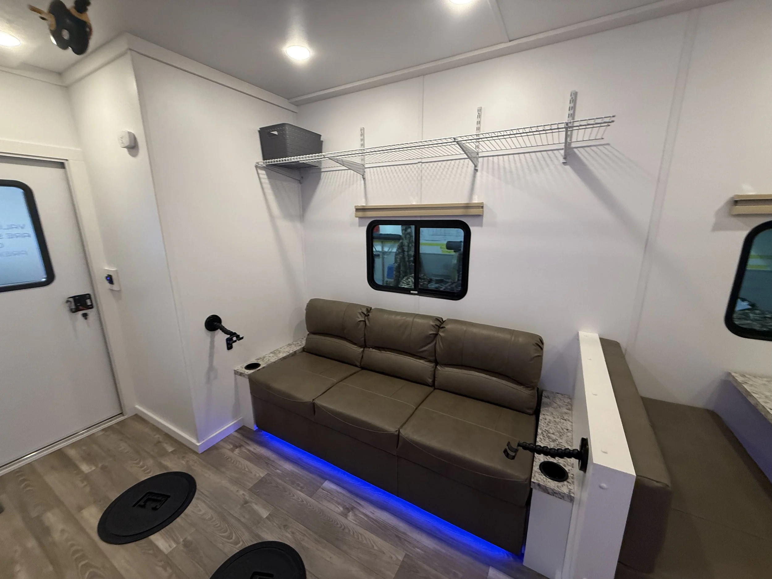 Stay warm and enjoy fishing on even the coldest days in our 8’x16' custom built luxury ice house. Our spacious heated ice house provides a comfortable and cozy environment for guest to stay warm, allowing you to focus on the thrill of fishing without the biting cold affecting your experience. With ample space to move around and a carefully planned layout, our luxury ice house offers the perfect setting for a memorable ice fishing adventure.